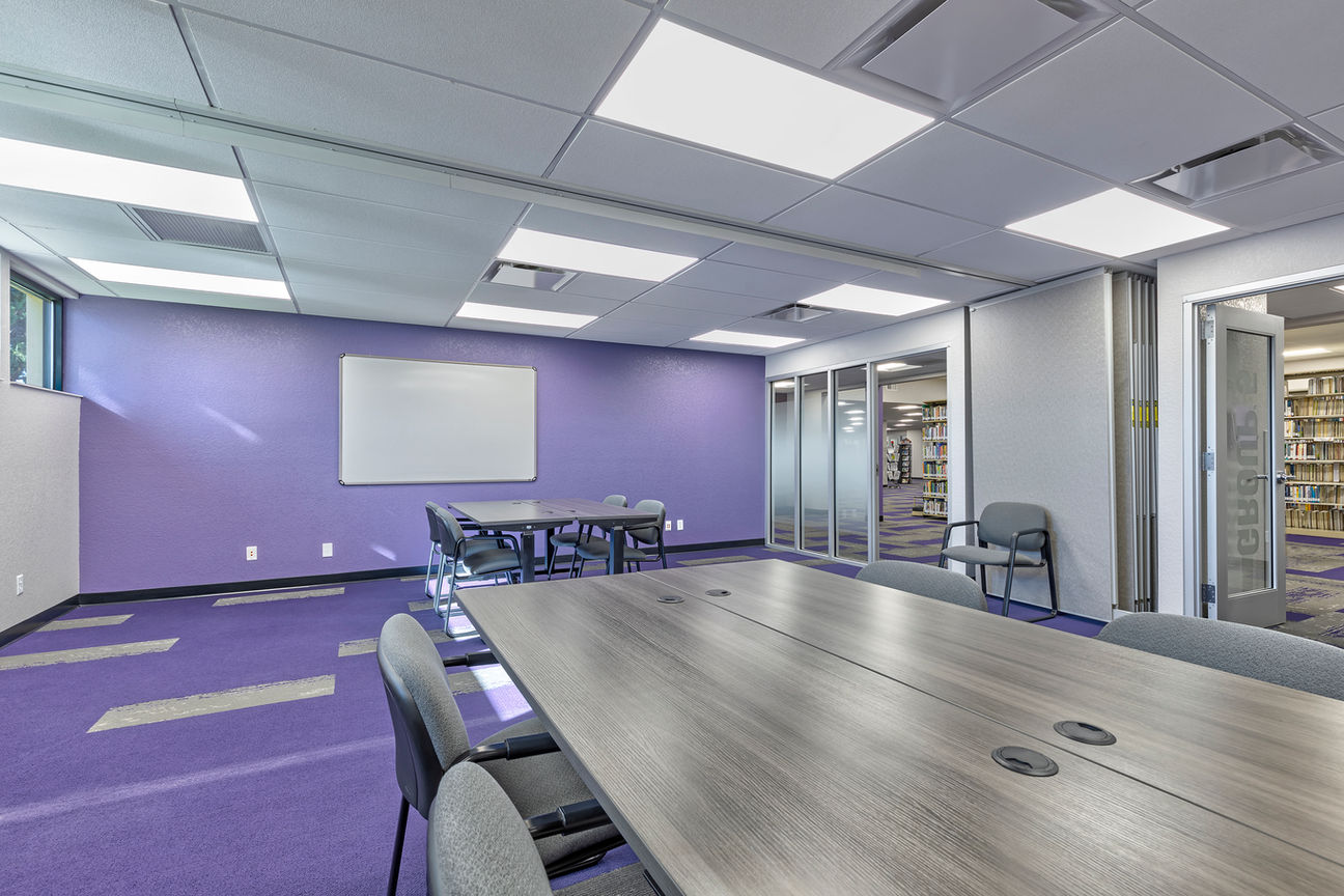 Eastern AZ College (EAC) invested $1.4 million into the renovation of the existing Alumni Library into the Student Learning Center to improve student success. Adding to the printed library materials available, students have access to the latest information through the multi-media environment. The existing space was transformed into a vibrant center for tutoring and studying, student collaboration and interaction, and computer resources. The building now provides 27 individual and group study rooms, a lounge, a quiet study area with individual carrels, and a comfortable reading niche. A repurposed upper level supports additional learning and tutoring. Staff and students now enjoy new lighting and interior finishes, along with repaired exterior finishes and new exterior windows.
